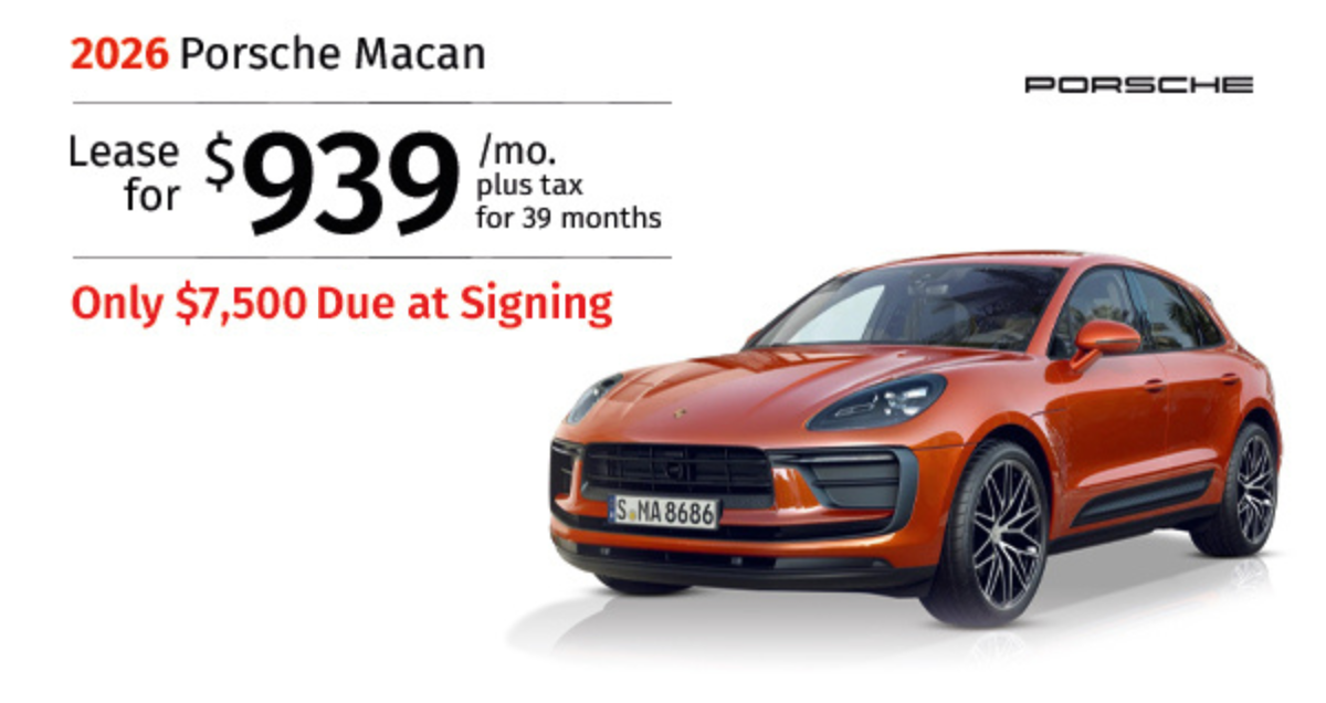 2026 Porsche Macan. Stock #TLB05030. MSRP $73,740. $939/mo. plus tax 39 months lease. $7,500 total due at signing. Includes down payment, tax, first payment, tag, acquisition fees, dealer fee, and dealer installed options, if any. $0 security deposit. Lease end...Request More Info