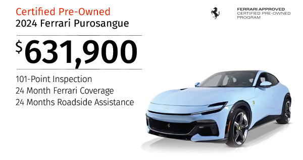 2024 Ferrari Purosangue Stock# R0303687P Selling Price $631900. Photos are for illustration only. Subject to availability/sale. Offer Ends 10/31/2025Request More Info