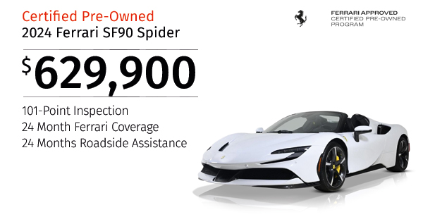 2024 Ferrari SF90 Spider Stock# R0310630Z Selling Price $629900. Photos are for illustration only. Subject to availability/sale. Offer Ends 10/31/2025.Request More Info