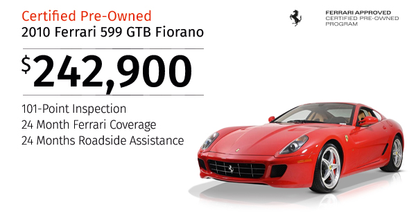 2010 Ferrari 599 GTB Fiorano Stock# S0318039A Selling Price $242900. Photos are for illustration only. Subject to availability/sale. Offer Ends 10/31/2025Request More Info