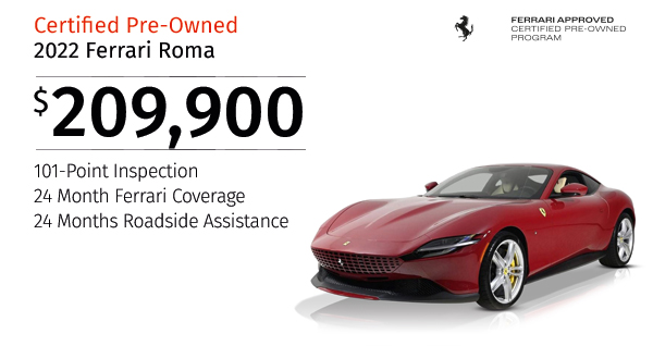 2022 Ferrari Roma Stock# S0323993A Selling Price $209900. Photos are for illustration only. Subject to availability/sale. Offer Ends 10/31/2025Request More Info