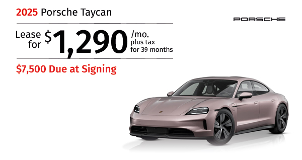 2025 Porsche Taycan RWD. Stock #SSA12503. MSRP $113,805. $1290/mo. 39 months lease. $7500 total due at signing. Includes down payment, tax, first payment, tag, acquisition fees, dealer fee, and dealer installed options, if any. $0 security deposit. Lease end value...Request More Info