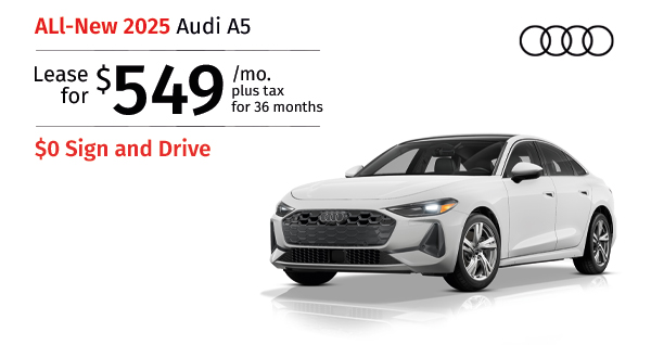 2025 Audi A5 All New. Stock #SN045807. MSRP $52630. $549/mo.36 months lease. $0 Rebate. $0 Total due. Includes down payment, tax, first payment, tag, acquisition fees, dealer fee, and dealer installed options, if any. $0 security deposit. Lease end value...Request More Info