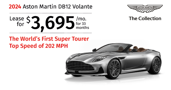 2026 Aston Martin DB12 Volante. Stock #TGM16482. MSRP $344,150. $3,695/mo. plus tax 33 months lease.$31,835 Total due. Includes down payment, tax, first payment, tag, acquisition fees, dealer fee, and dealer installed options, if any. $0 security deposit. Lease end value...Request More Info