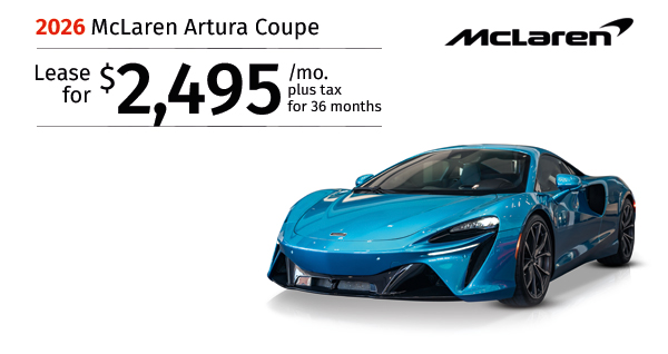 2026 McLaren Artura Coupe. Stock #TW003975. MSRP $301,600. $2,495/mo. plus tax 36 months lease. $30,337 Total due. Includes down payment, tax, first payment, tag, acquisition fees, dealer fee, and dealer installed options, if any. $0 security deposit. Lease end value...Request More Info