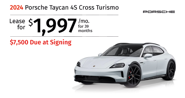 2025 Porsche Taycan 4S Cross Turismo. Stock #804322. MSRP $155695. $1,997/mo. plus tax 39 months lease. $ Rebate. $7500 Total due. Includes down payment, tax, first payment, tag, acquisition fees, dealer fee, and dealer installed options, if any. $0 security...Request More Info